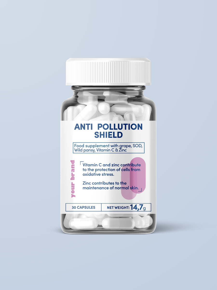 Complément alimentaire en private label pour protéger la peau de la pollution. Formulées à base d’extrait de fleur de pensée et de SkinAx²™, une formule végétalienne brevetée de renforcement du collagène combinant de l’extrait de pépins de raisin, de la superoxyde dismutase (SOD), du zinc et de la vitamine C. Ces gélules nutricosmétiques sous label privé sont étayées par la science, conformes à la réglementation européenne et approuvées par les consommateurs.